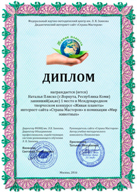 Каждый участник конкурса получает специальный диплом от сайта Страна Мастеров и Федерального научно-методического центра им. Л. В. Занкова. Для того, чтобы их получить, нужно нажать на картинку диплома справа от своей работы. Дальнейшие инструкции вы увидите на экране.