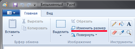 В других версиях программы Paint меню выглядит иначе, но функция "Изменить размер" все равно присутствует: